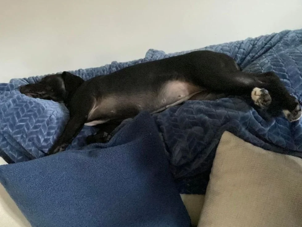 We’re over the moon with the progress they have made, Violet used to bark at Derek the Labrador even from a distance, but today, after weeks small steps and careful meet-ups they were nose to nose with big helpings of chasing and playing together. We are all over the moon!